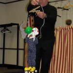 The show was really terrific. Over 100 kids and their parents attended. They got to see puppet birds who laid an egg, puppet clowns who blew balloons and floated up above the ground, puppet jugglers who actually juggled wooden balls in the air, and even a puppet replica of Conrad Hartz when he ran away and became a clown in Ringling Brothers and Barnum & Bailey’s Circus. At the end they were entertained by magic tricks as the multi-talented Hartz finished with a flourish.